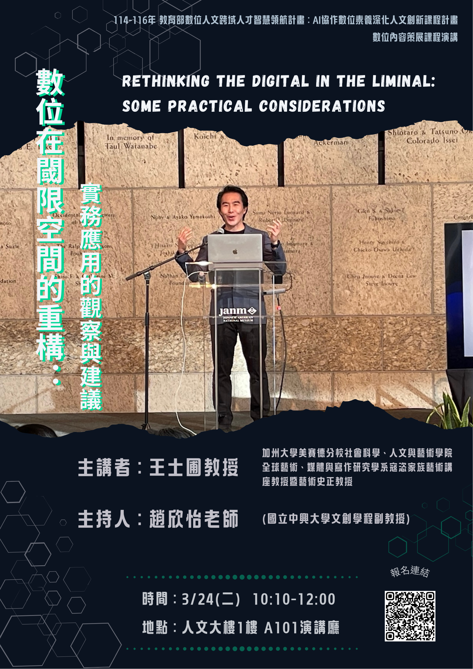 【課程講座】數位在閾限空間的重構:實務應用的觀察與建議 (Rethinking the Digital in the Liminal: Some Practical Considerations)